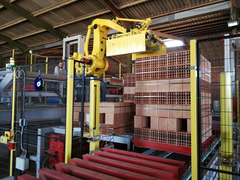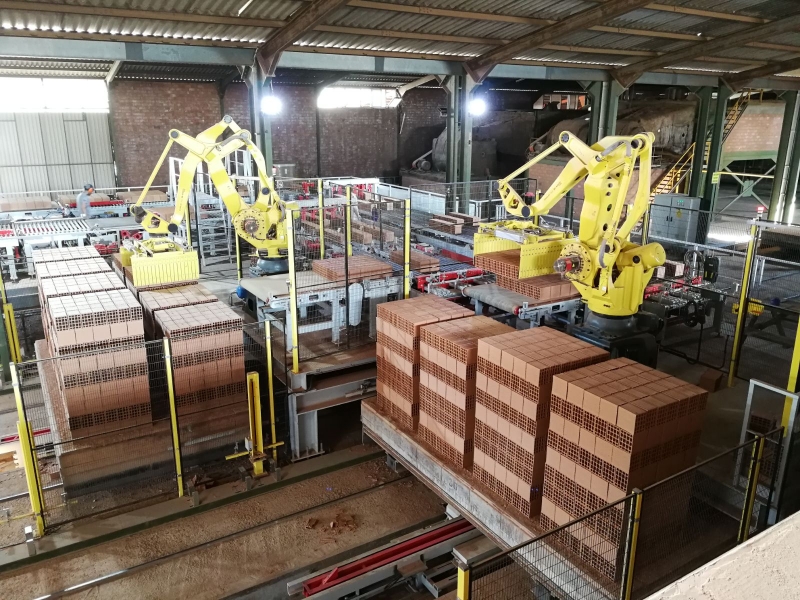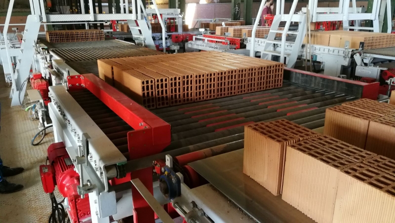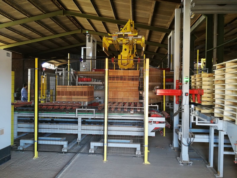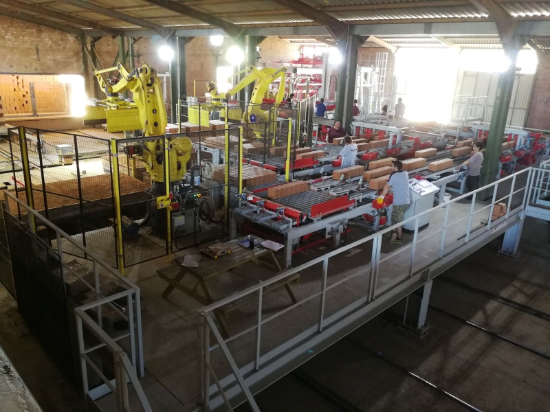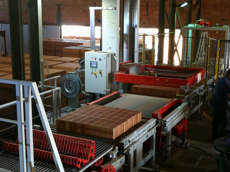 Tunnel kiln car unloading, packeting system with wood palet and no palet (also otomation) for DERYA-1 factory,